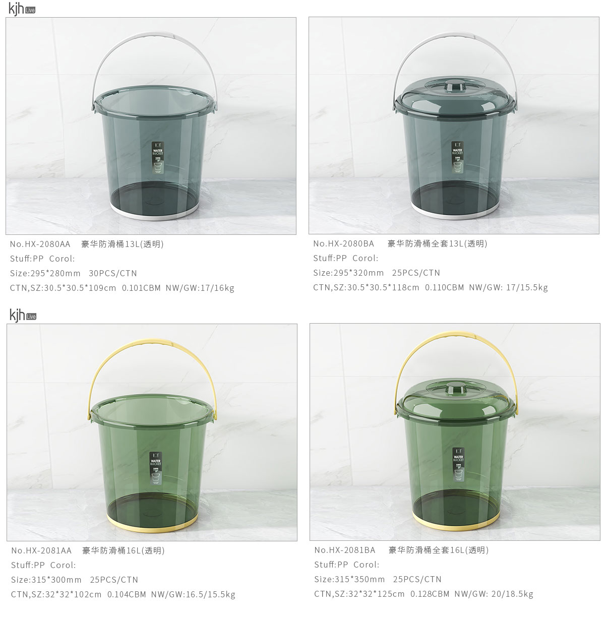 豪華防滑桶13L/16L/20L(桶/全套桶+蓋)透明款