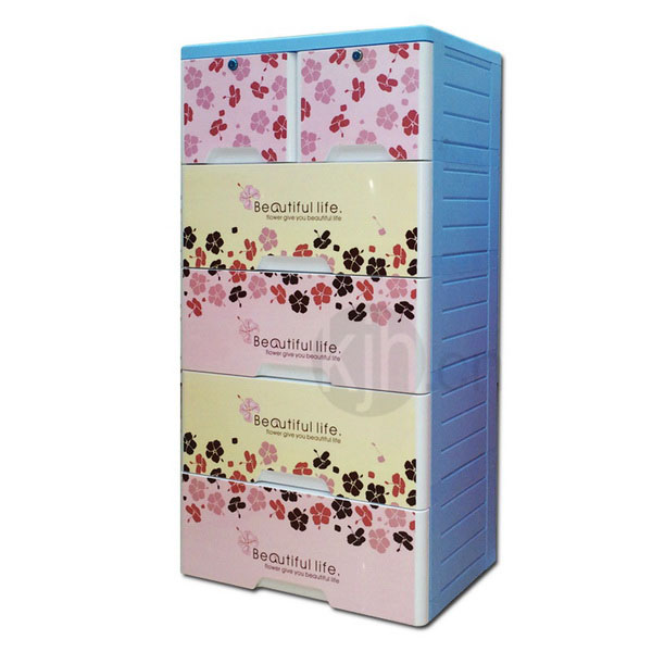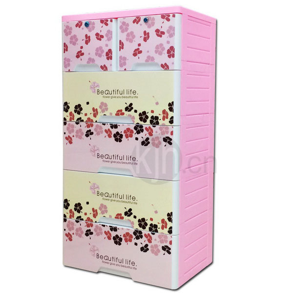 五層整理柜-帶鎖(富貴色彩花)