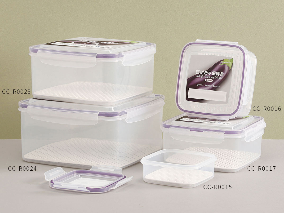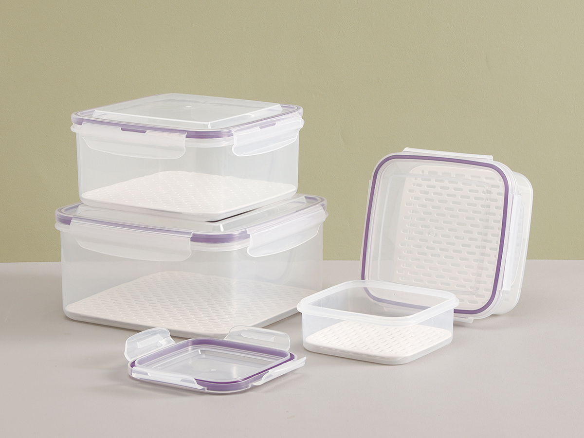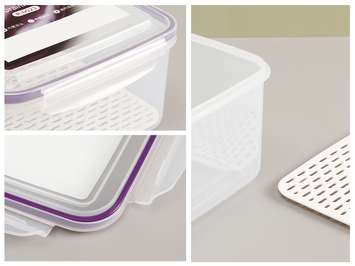 美時方形密封瀝水保鮮盒(500ml/1100ml/2100ml/3380ml/5250ml)