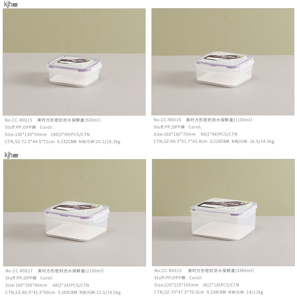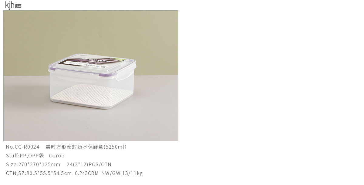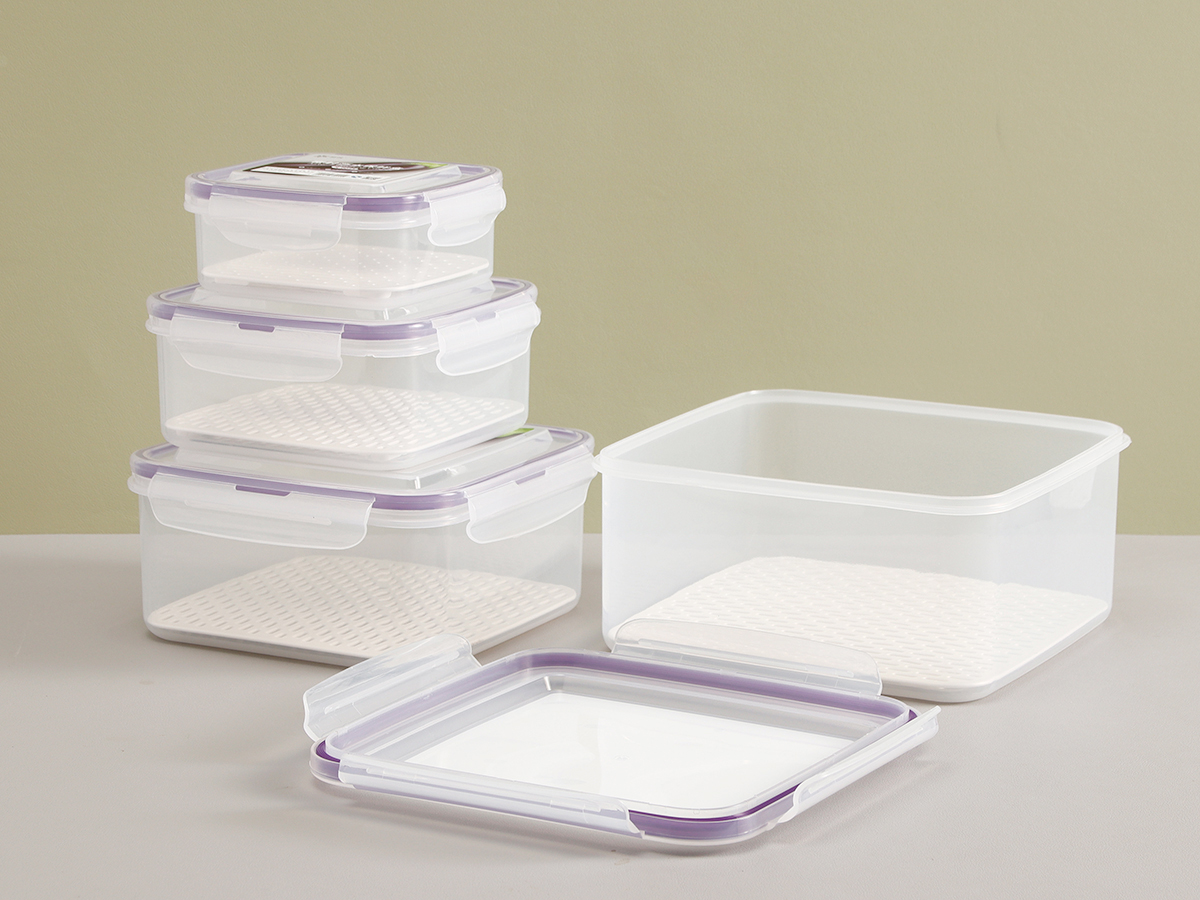 美時方形密封瀝水保鮮盒(500ml/1100ml/2100ml/3380ml/5250ml)