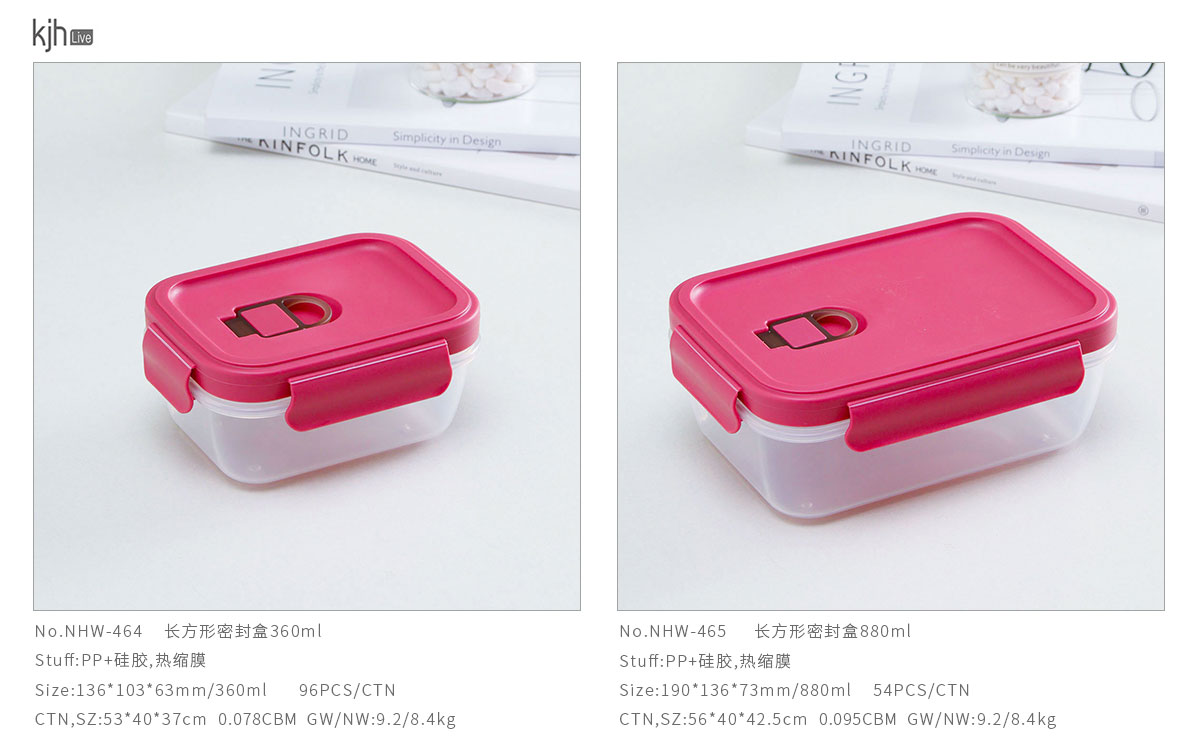 Size: NHW-464:136*103*63mm/360ml NHW-465:190*136*73mm/880ml