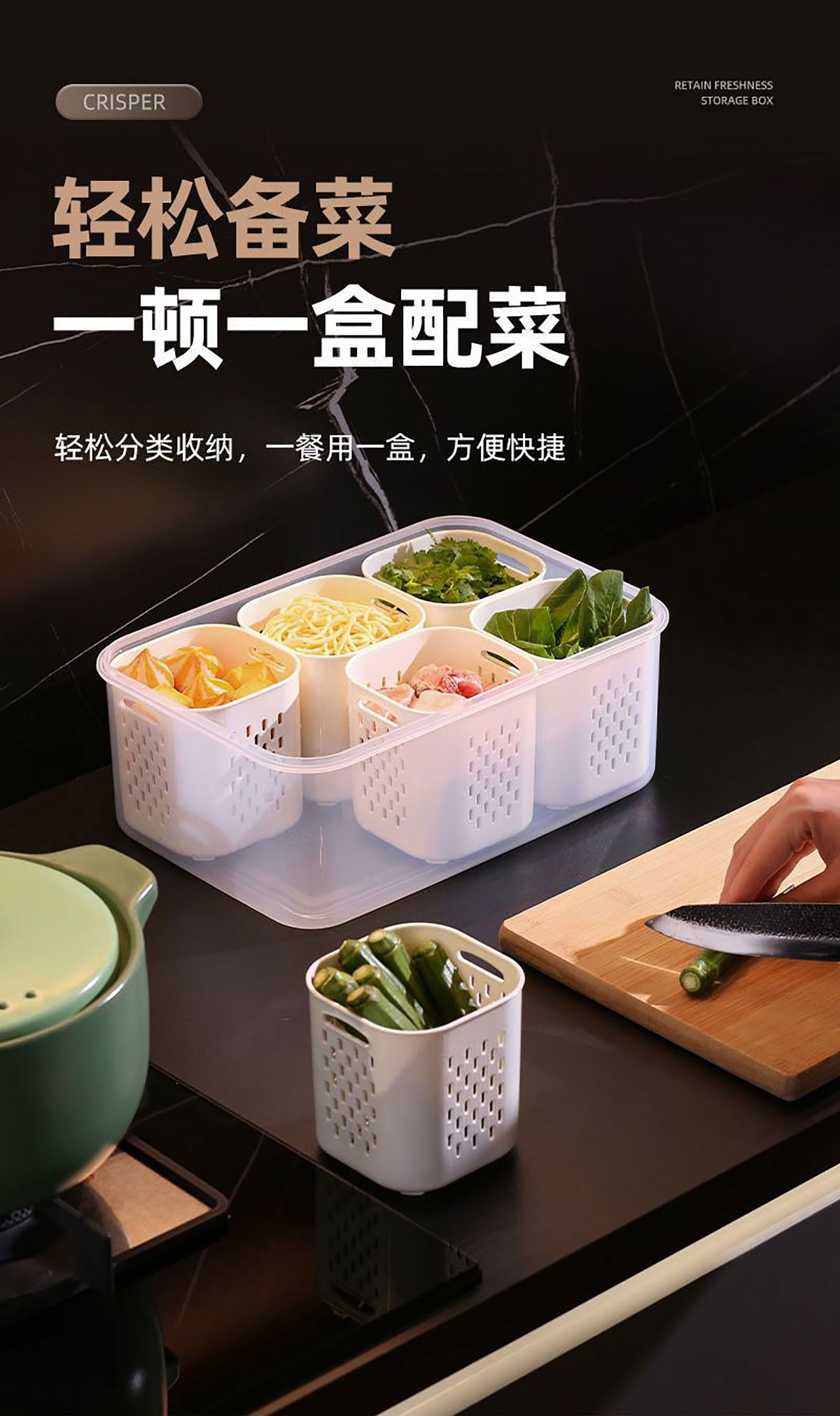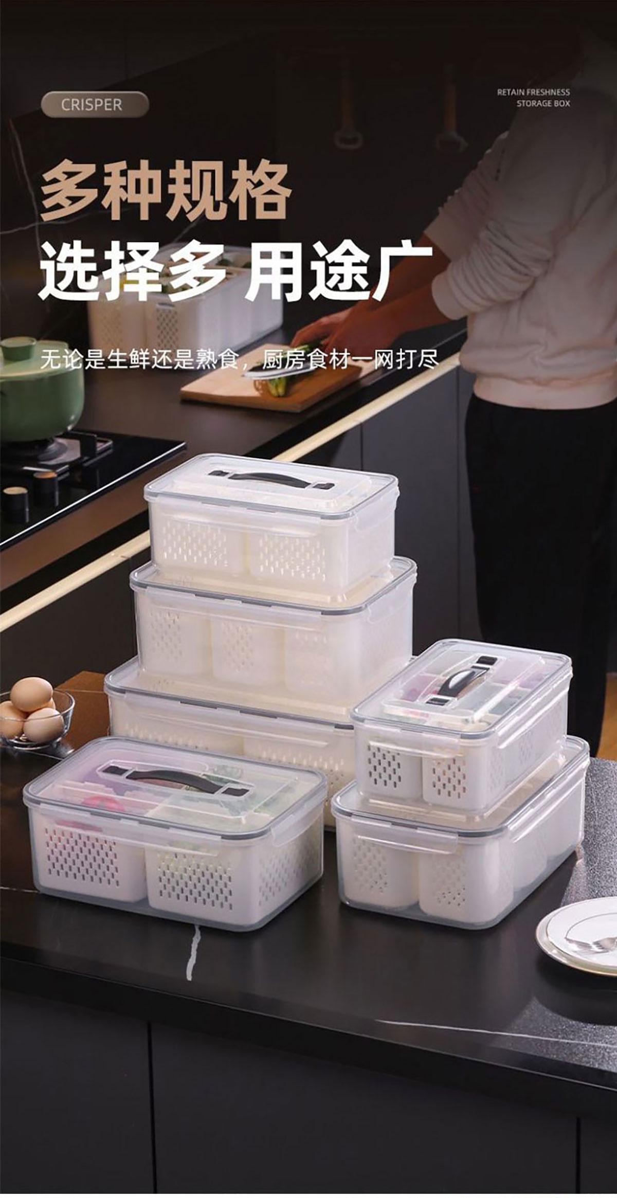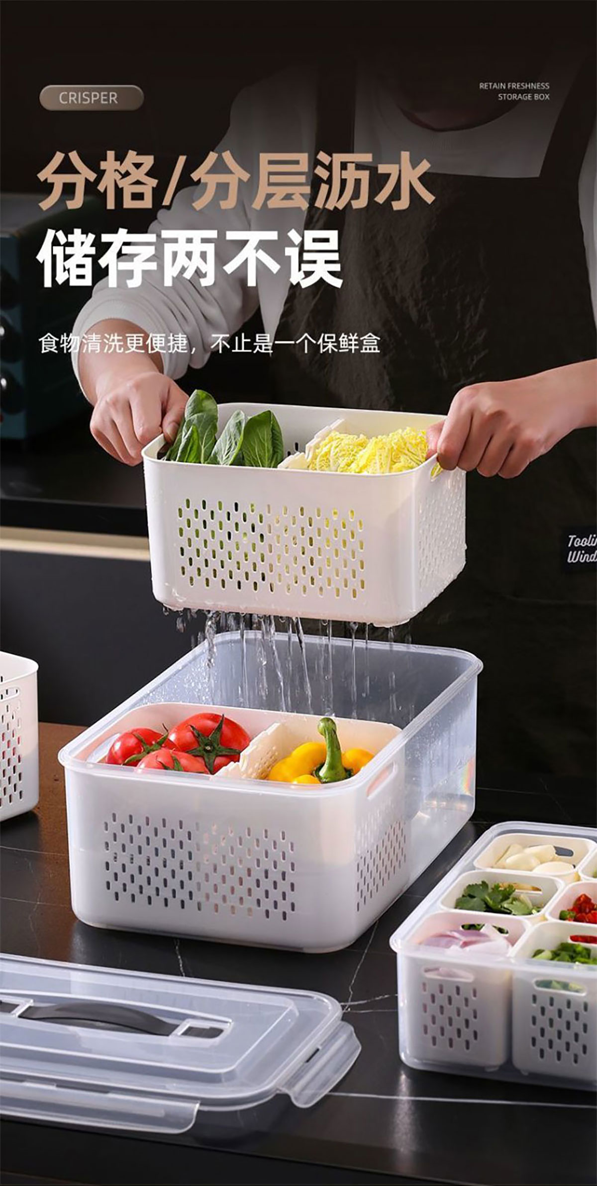 手提密封2格/3格/6格瀝水保鮮盒(小號(hào)/中號(hào)/大號(hào))