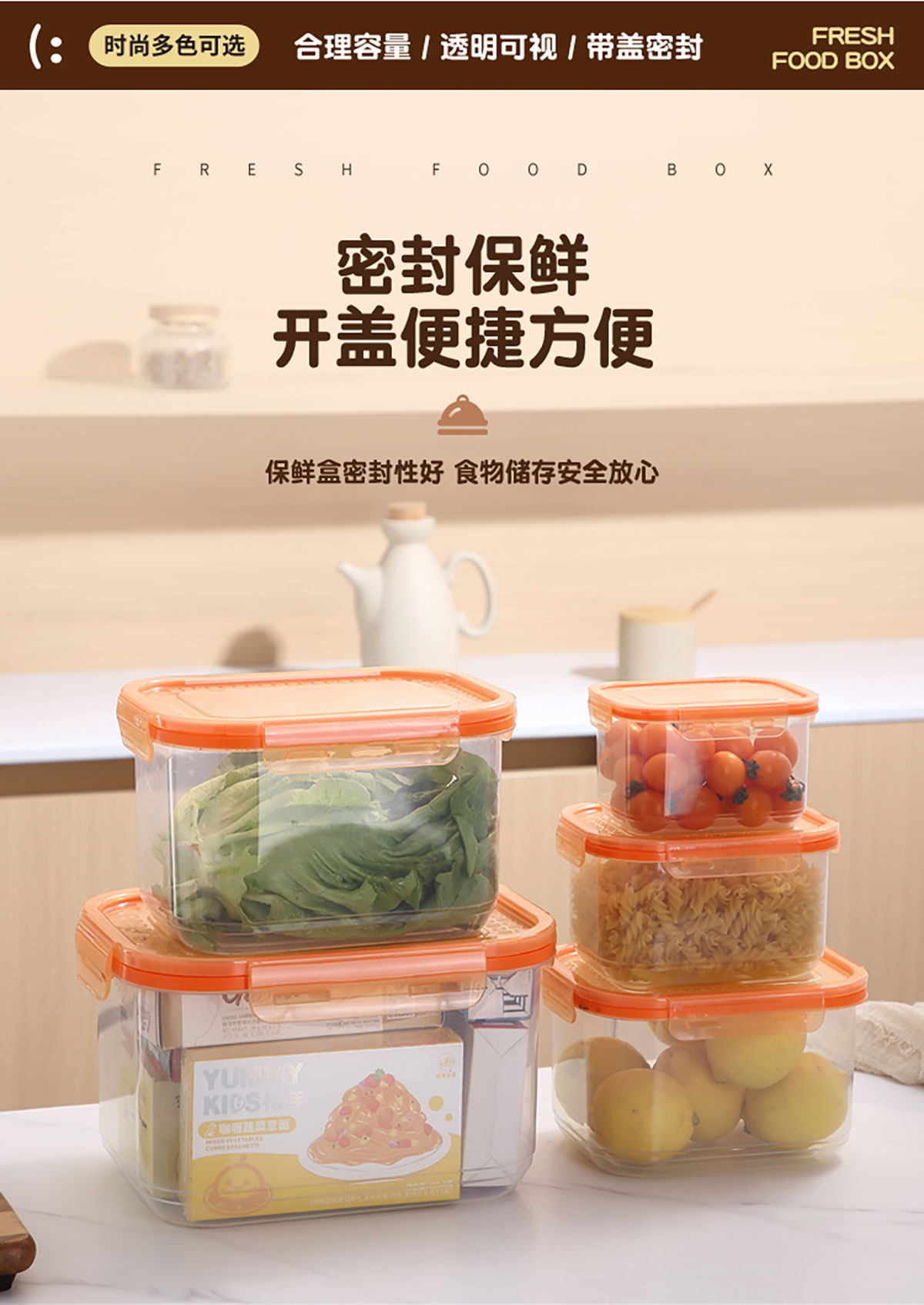 鮮凈無縫密封保鮮盒(長方加高款3件套/5件套)
