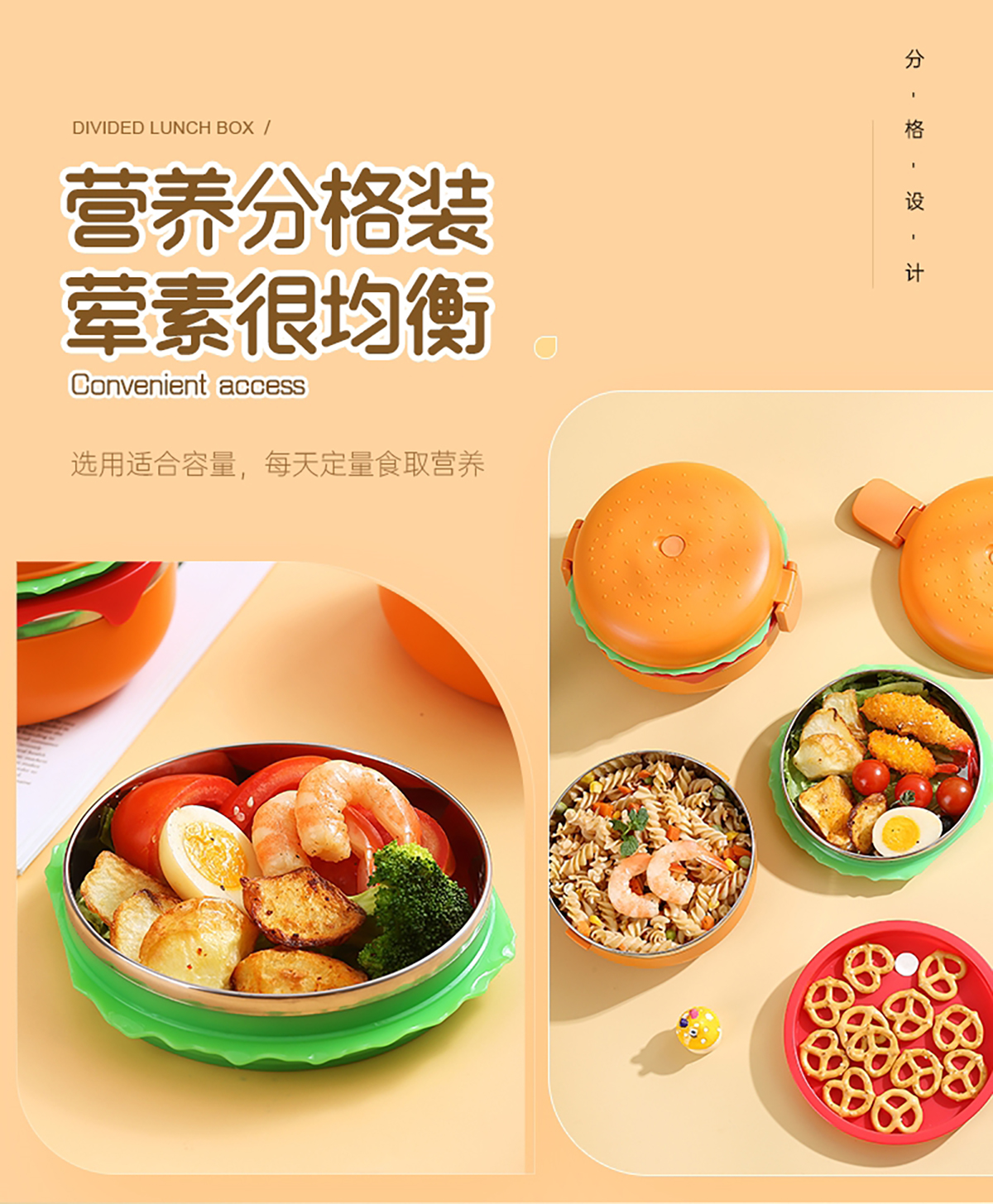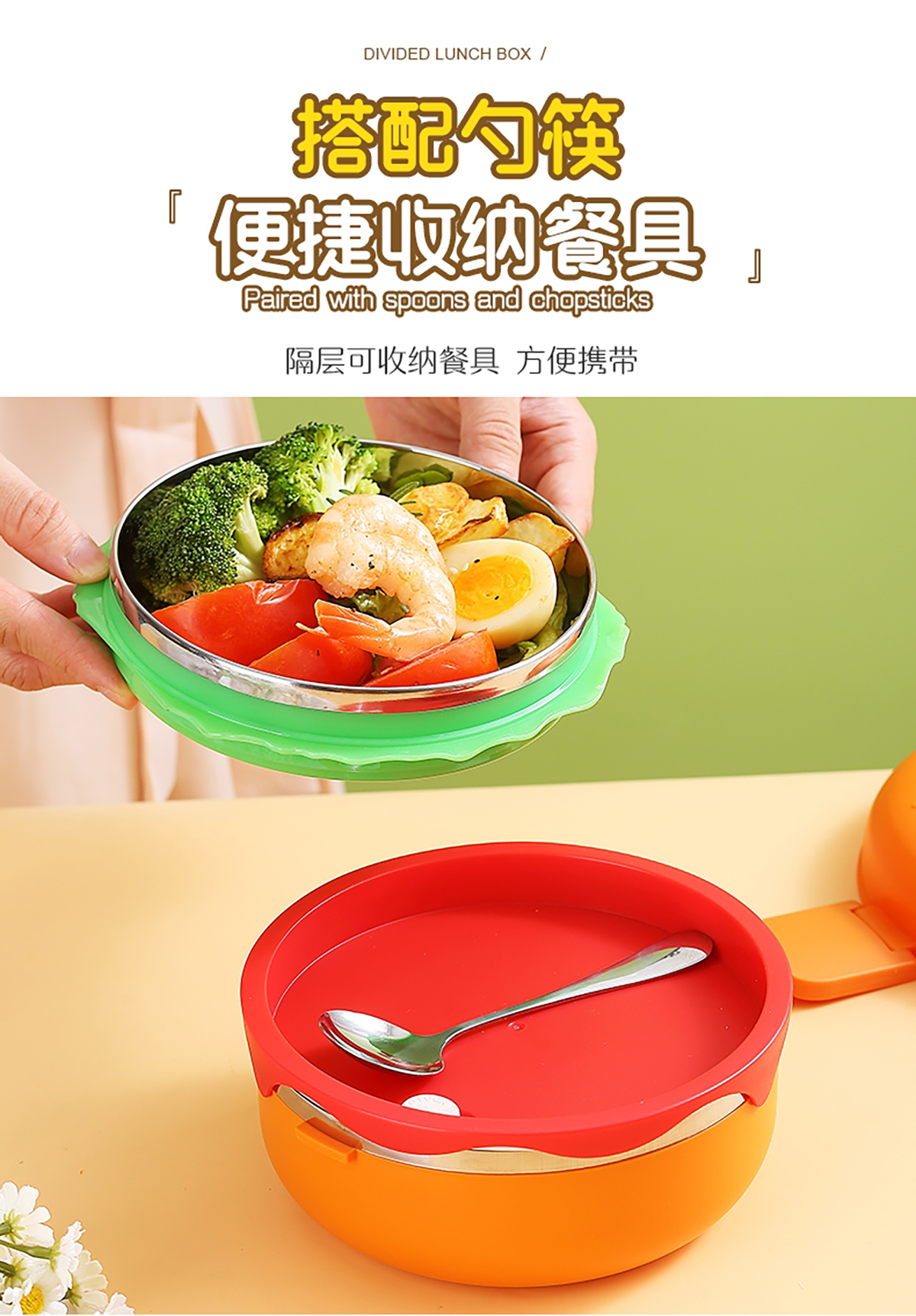 圓形漢堡不銹鋼餐盒(配不銹鋼勺筷)