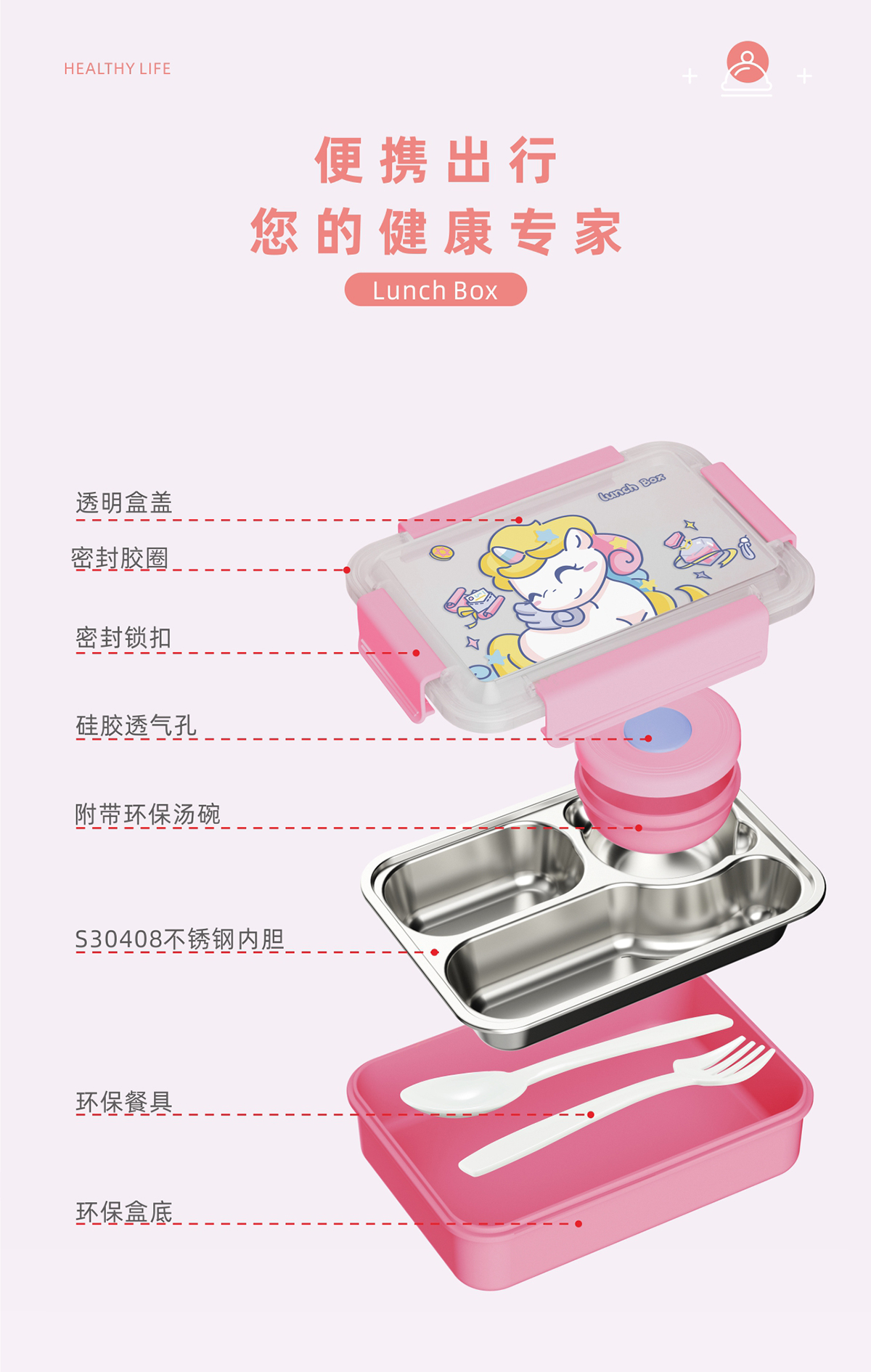 童趣不銹鋼三格飯盒(小號(hào)/中號(hào))