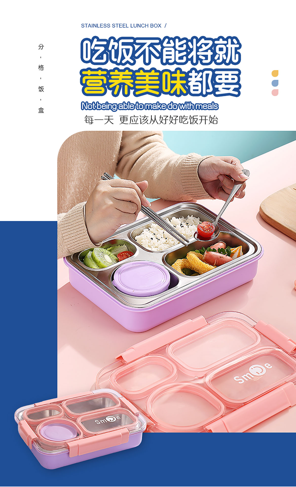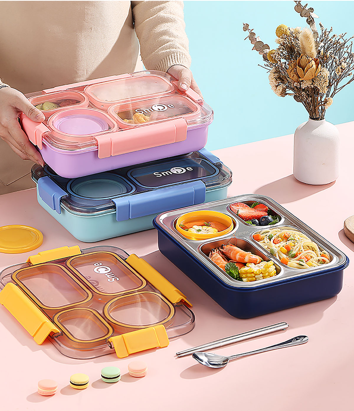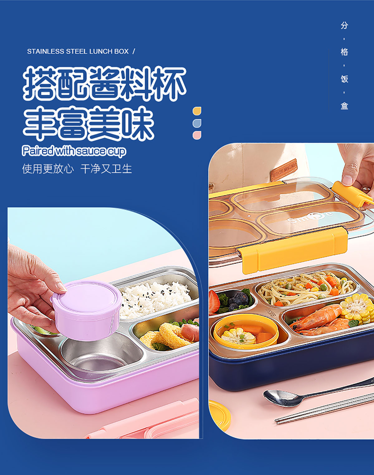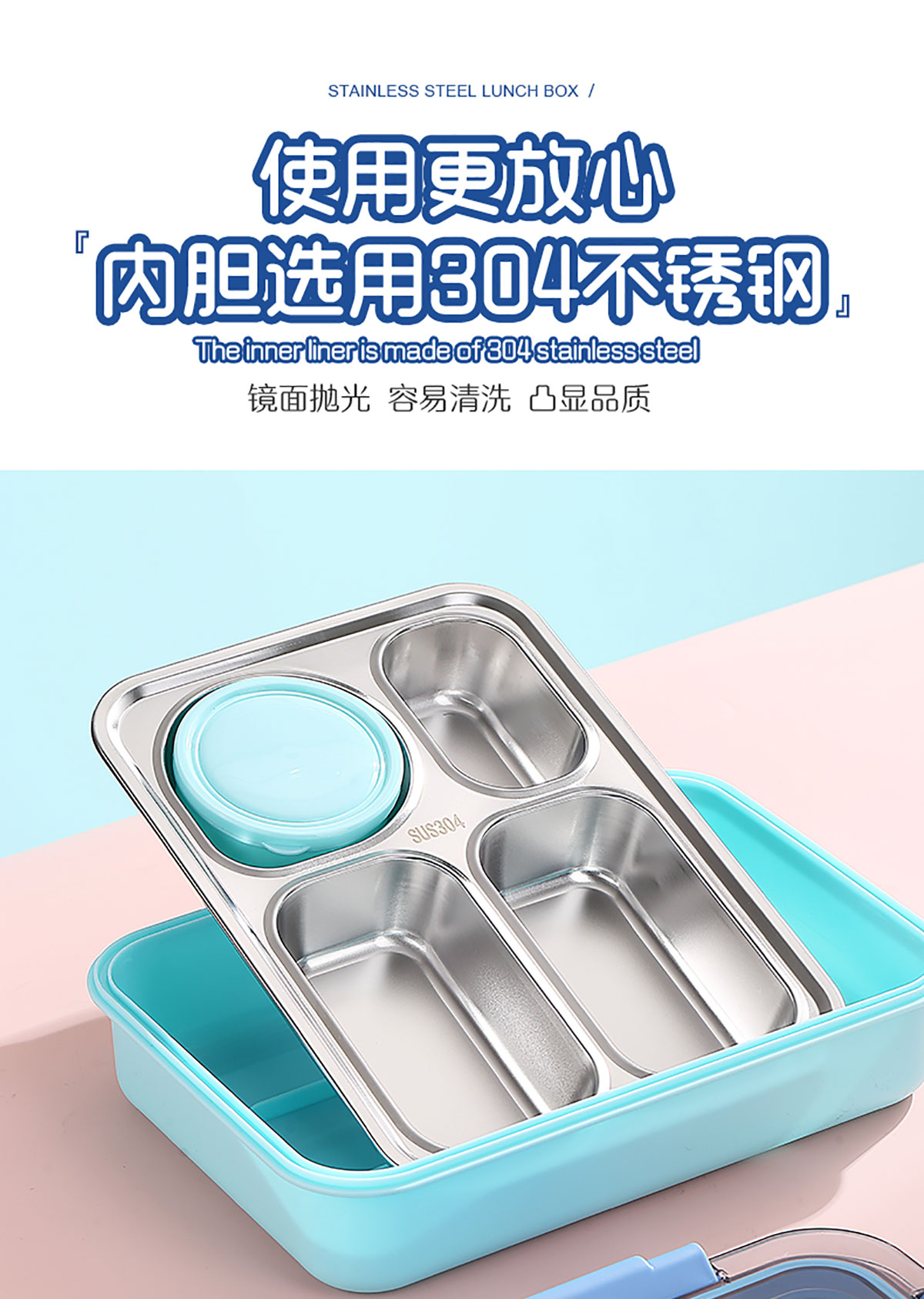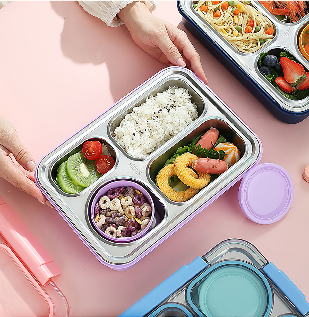 900ml獨(dú)立密封不銹鋼餐盒(4格+PP碗150ml+不銹鋼勺筷)