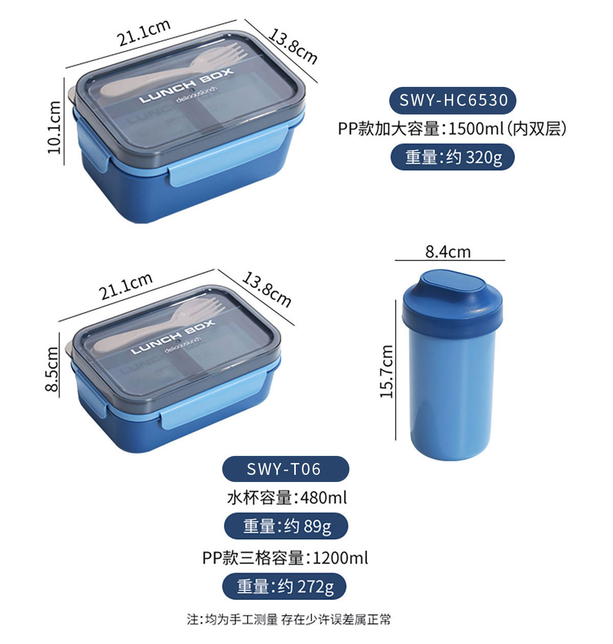 SWY-T06(套裝):211*138*85mm/1200ml 水壺:84*157mm/480ml