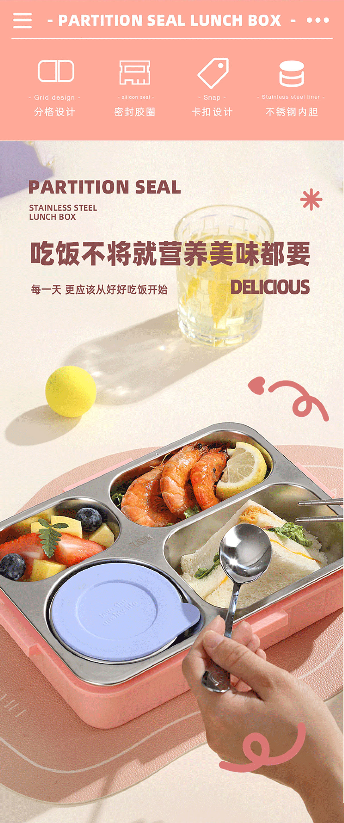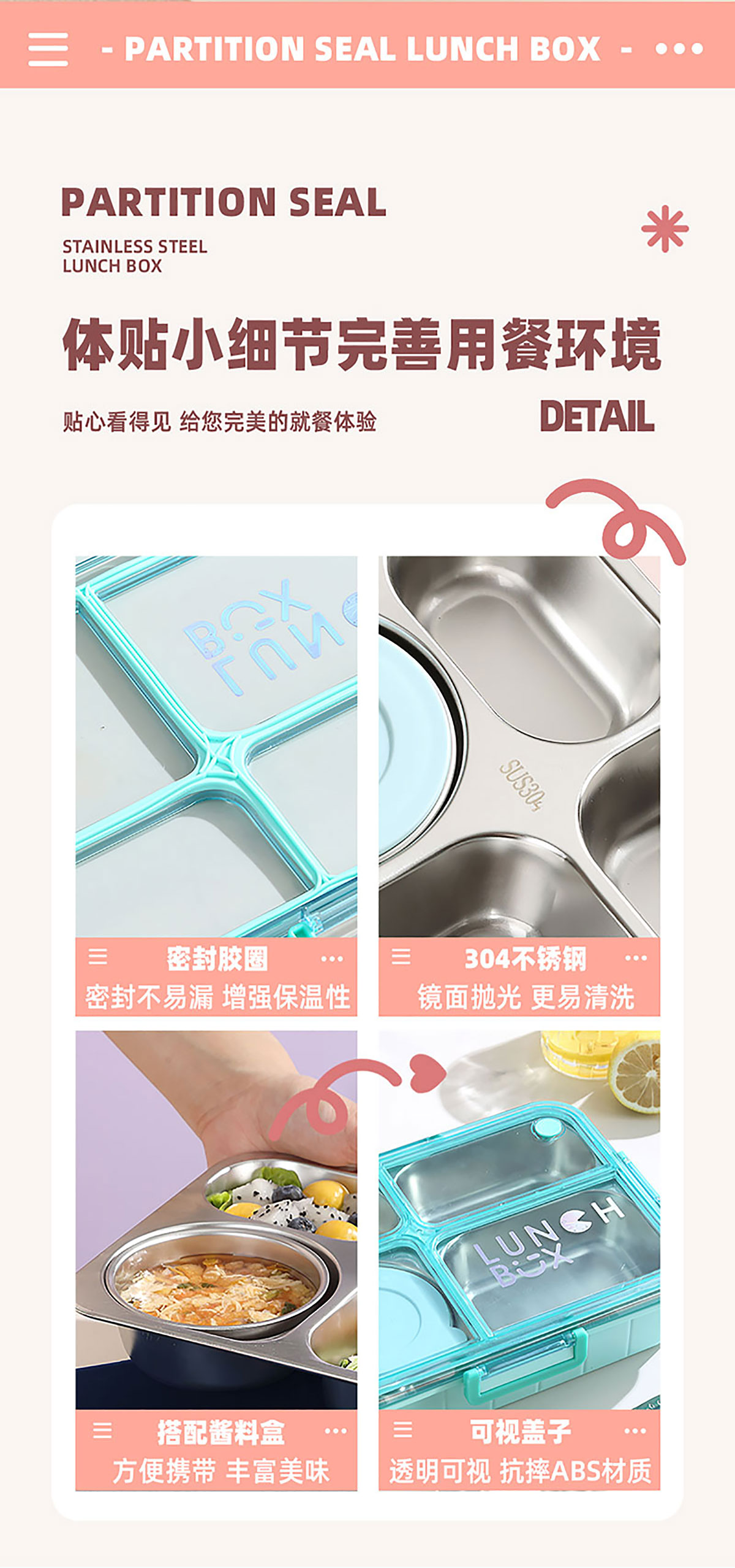 AQX-2622:262*193*65mm/不銹鋼4格900ml+醬料杯80ml