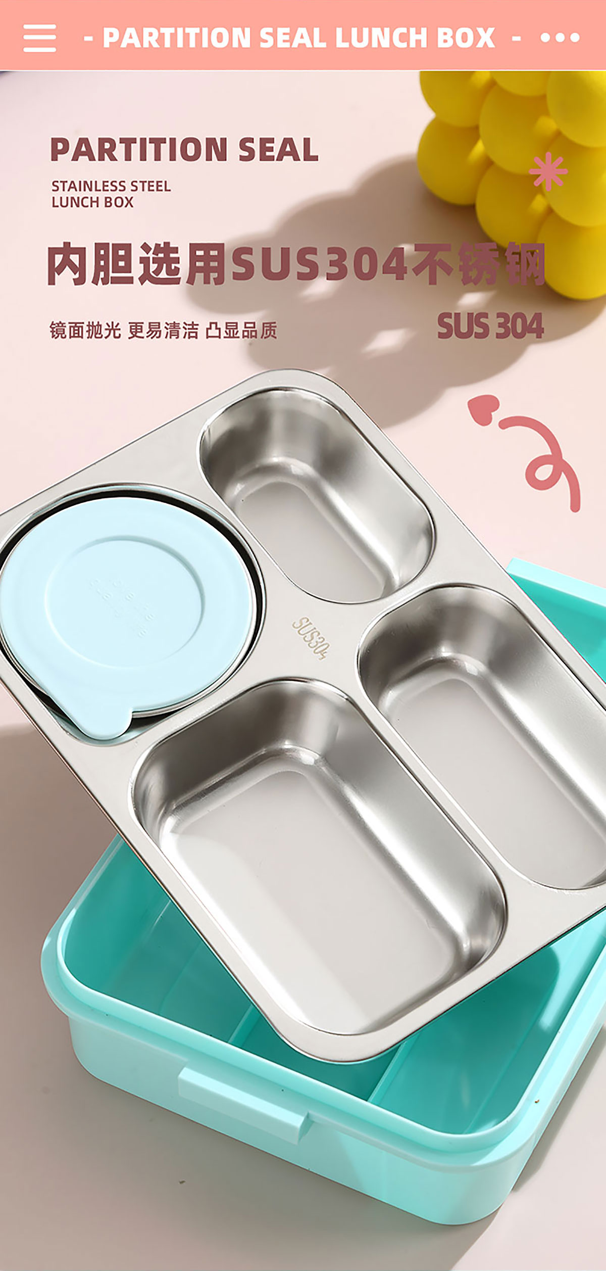 AQX-2623:262*193*65mm/不銹鋼4格900ml+鋼碗150ml