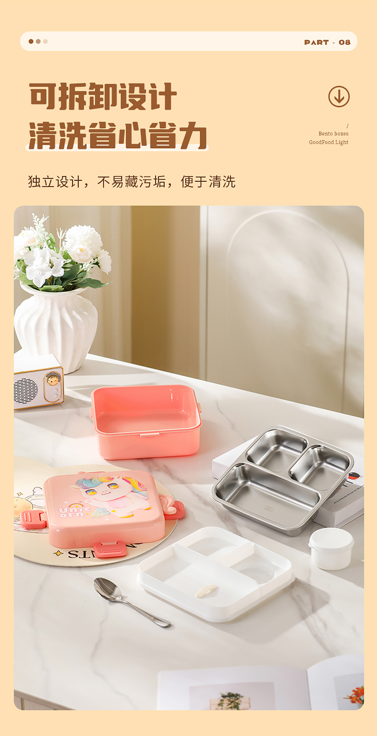 獨(dú)角獸/馴鹿/美人魚(yú)正方形飯盒(塑料/不銹鋼)
