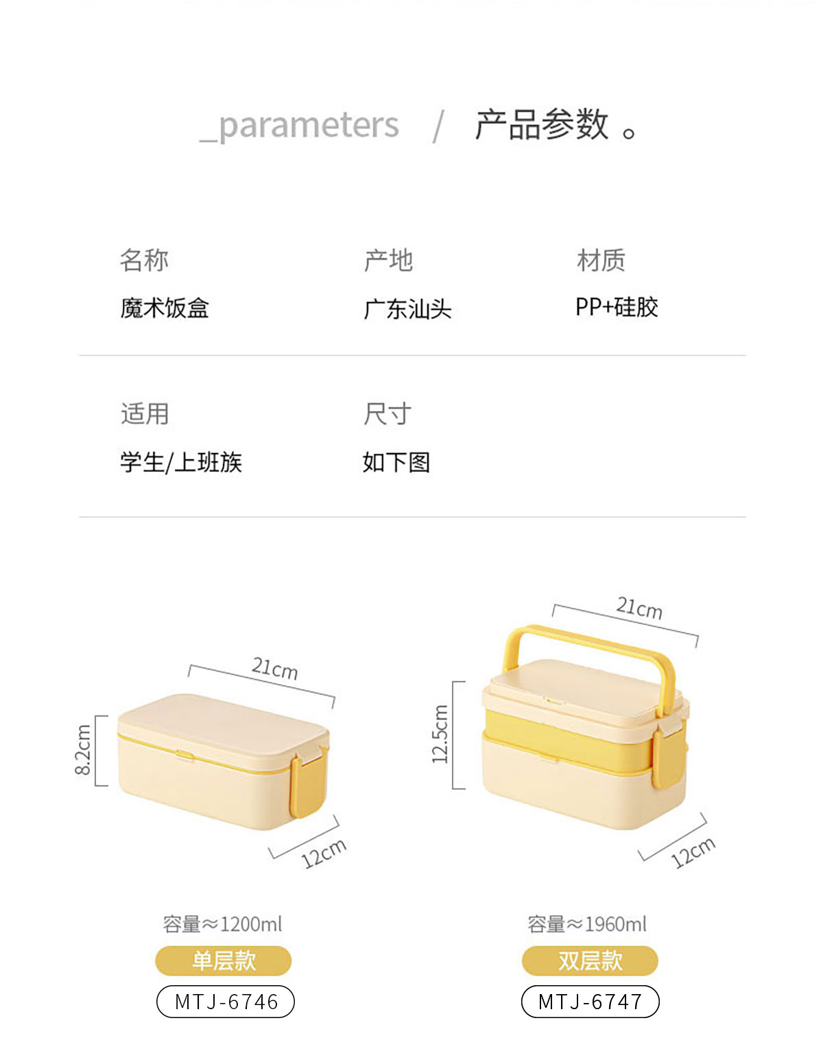 MTJ-6746(單層):210*120*82mm/1200ml