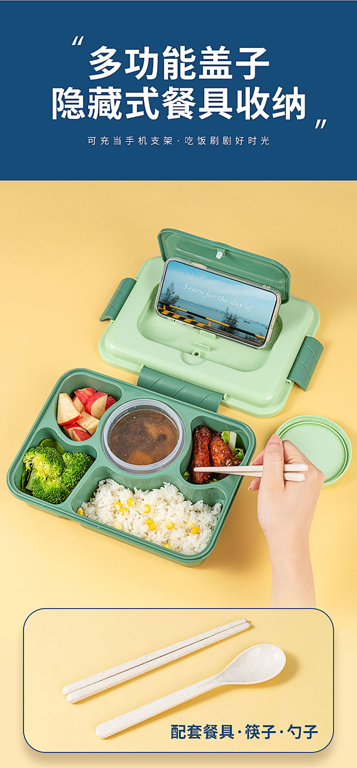 SHX-2256(四格帶湯碗):飯盒:260*190*80mm 湯碗:Φ90*60mm/250ml