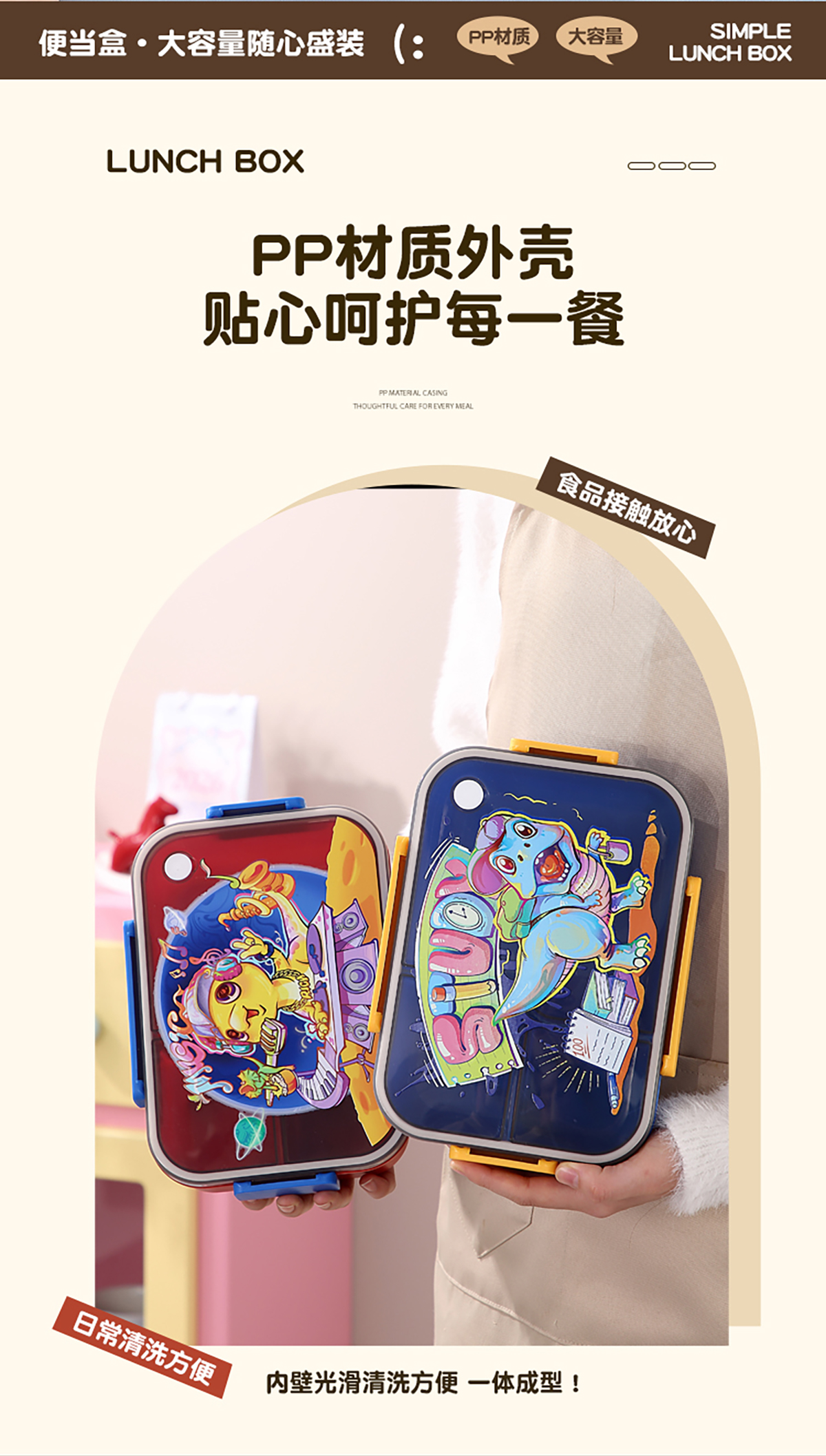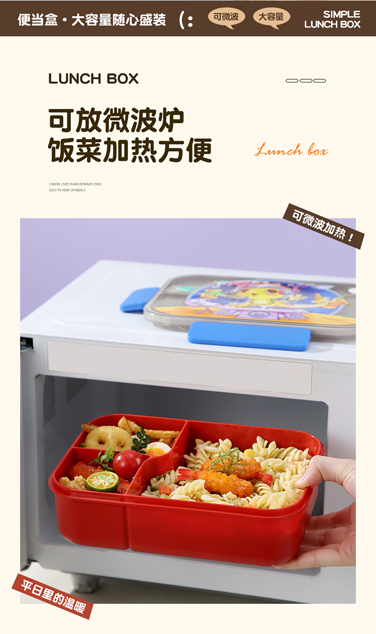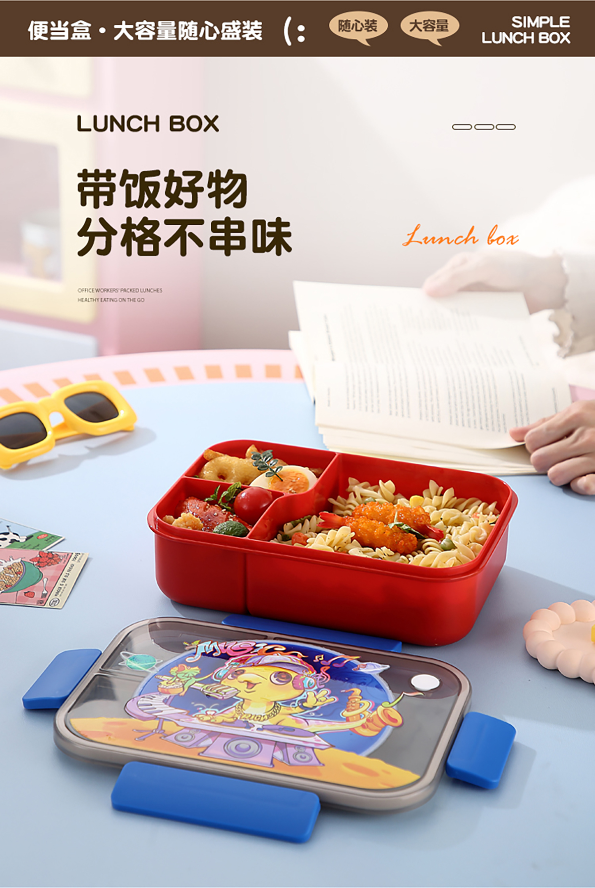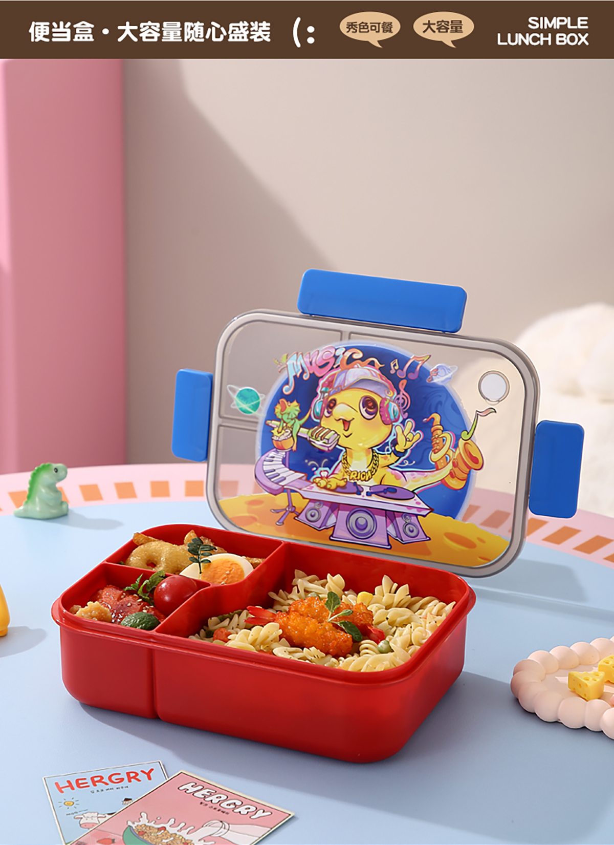 卡通透明蓋分格飯盒1450ml